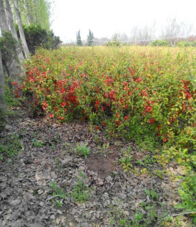 貼梗海棠,樹體總高度0.6~1.9m高之間,樹葉形態(tài)根據(jù)種類各不相同有差別,有的很細(xì)很長,有的較圓,貼梗海棠花顏色是充實,如國旗紅,紅色,深黃色,粉白色等,花開的時間十分長,花量十分大,每年是花開的時間期間從3月到5月,種子8~9月才熟,有較好的出苗能力。